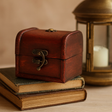 Малък, правоъгълен сандък с меко извит капак, завършен в дълбоко бордо с леко потъмнели ръбове, съчетава красота и функционалност. Месинговите хардуерни елементи улавят светлината, докато винтидж патината придава тих характер на рафт, бюро или нощно шкафче. 🗝️