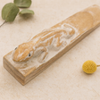 🪵 Ръчно издялан в Индонезия от масивно дърво, той носи естествен светлокафяв тон, обработен с бяло измиване и леко износен завършек. Видимият дървесен релеф и леко изветрялата повърхност създават усещане за стабилност на допир. По върха, ниско релефен гекон се извива в елегантна линия, с издълбани очи и меко извита опашка. Рустикалният характер се съчетава лесно с крайбрежни, бохемски и модерно-естествени пространства, добавяйки топлина без претрупване.