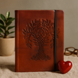 Тихата топлина на кожа, обработена с растителни багрила, под пръстите ви, текстурирана корица с нежни тонални преходи и Дървото на живота, издигащо се от центъра ѝ — този бележник се усеща като убежище, което можете да държите. Закотвено пространство, където мислите, емоциите и намеренията намират форма на страницата. 🌳