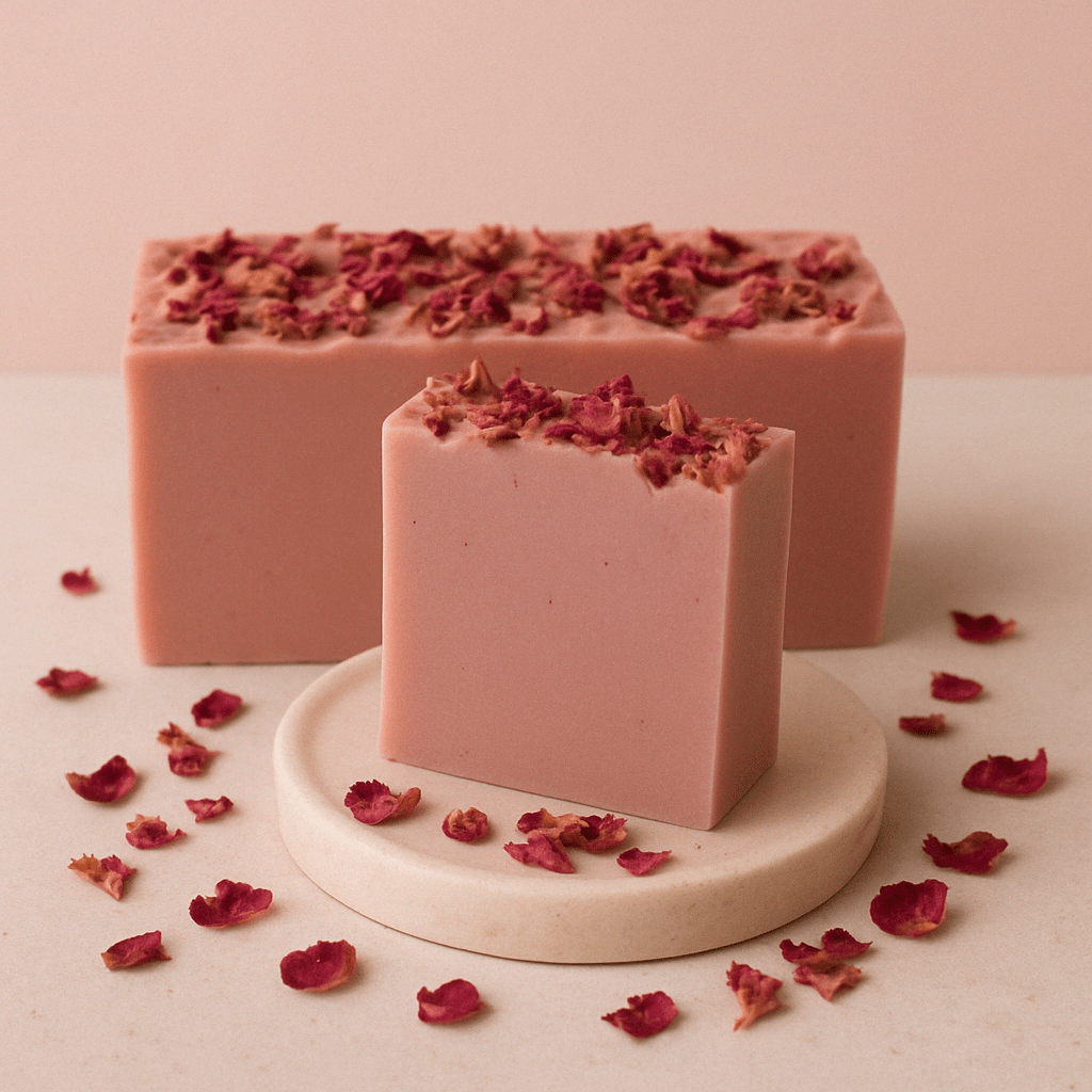 Всеки правоъгълен сапун показва успокояващ прасковено-розов нюанс с гладки, матови повърхности; един неравен ръб е украсен със сушени листенца за допир на естествена текстура. Ароматът съчетава класическа роза — дълго ценена за своята грация — с мек ванилов баланс и топлина. Произведен в малки серии, няма два еднакви сапуна. Опакован в восъчна хартия с етикет на съставките, всяко парче тежи приблизително 100 г и пристига с чиста, необозначена простота, която изглежда искрена и красива. 🫧