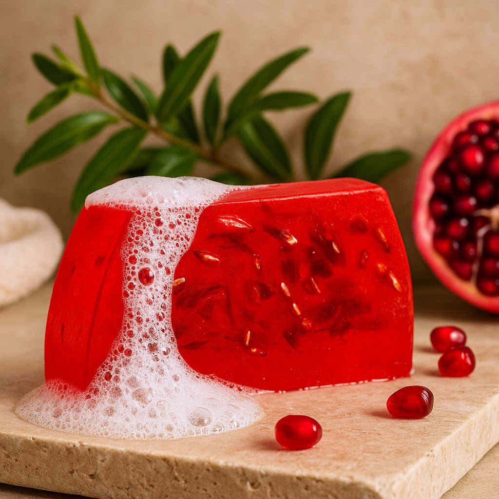 Топла вода, тихо дишане и лъскава червена плочка, почиваща в дланта ви — денят омекотява ръбовете си, докато ярка, кисело-сладка нотка на нар се издига и пяната става копринена. Ръчно изработена в Латвия, това е малък, постоянен ритуал, който ви връща към сетивата. 💧