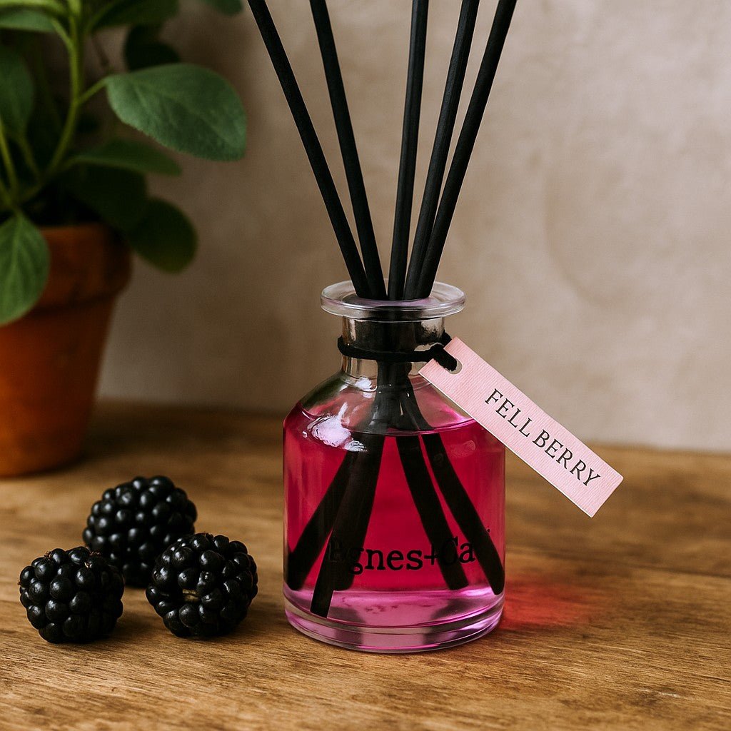 Естествените пръчици изтеглят ароматното масло нагоре и го освобождават бавно, час след час. Fell Berry носи усещането за плодове от жив плет с свеж зелен оттенък — ободряващ, но спокоен, достатъчно лек за ежедневието. Със своята чиста силуета и тъмни пръчици, той лесно се вписва както като декор, така и като функционален източник на аромат, добавяйки сдържан акцент на рафт или бюро. 🌿