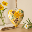 Дървена висяща украса във формата на сърце жълта флорална лъскава голяма