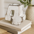 Масивно дървено „4“ стои с тиха увереност: триизмерна форма с чист изрез, ръчно натъркана с мека бяла патина, която позволява на по-тъмната текстура нежно да се появи. Отгоре държи малка свещ, която приканва светлина, превръщайки простия цифрен знак в значим маркер — присъствие, намерение и топлина, събрани в едно парче. ✨