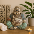 Buddha Statue Happy Buddha Wooden 30cm Blue Mint