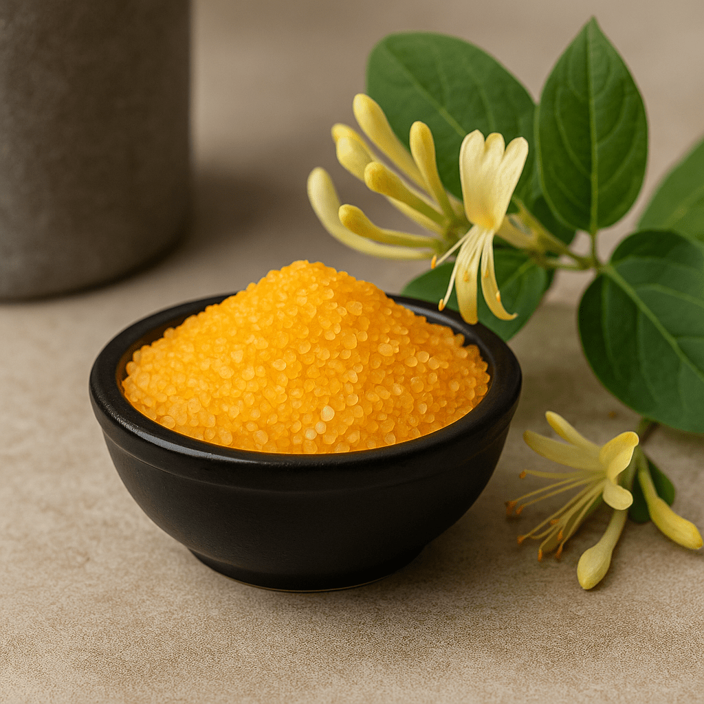 Warm, honeyed notes drift in as these honeysuckle simmering granules gently release their floral scent, softening the edges of the day and inviting a calm, harmonious mood. The small, orange beads sit quietly in your burner and do the work with grace. 🌼
