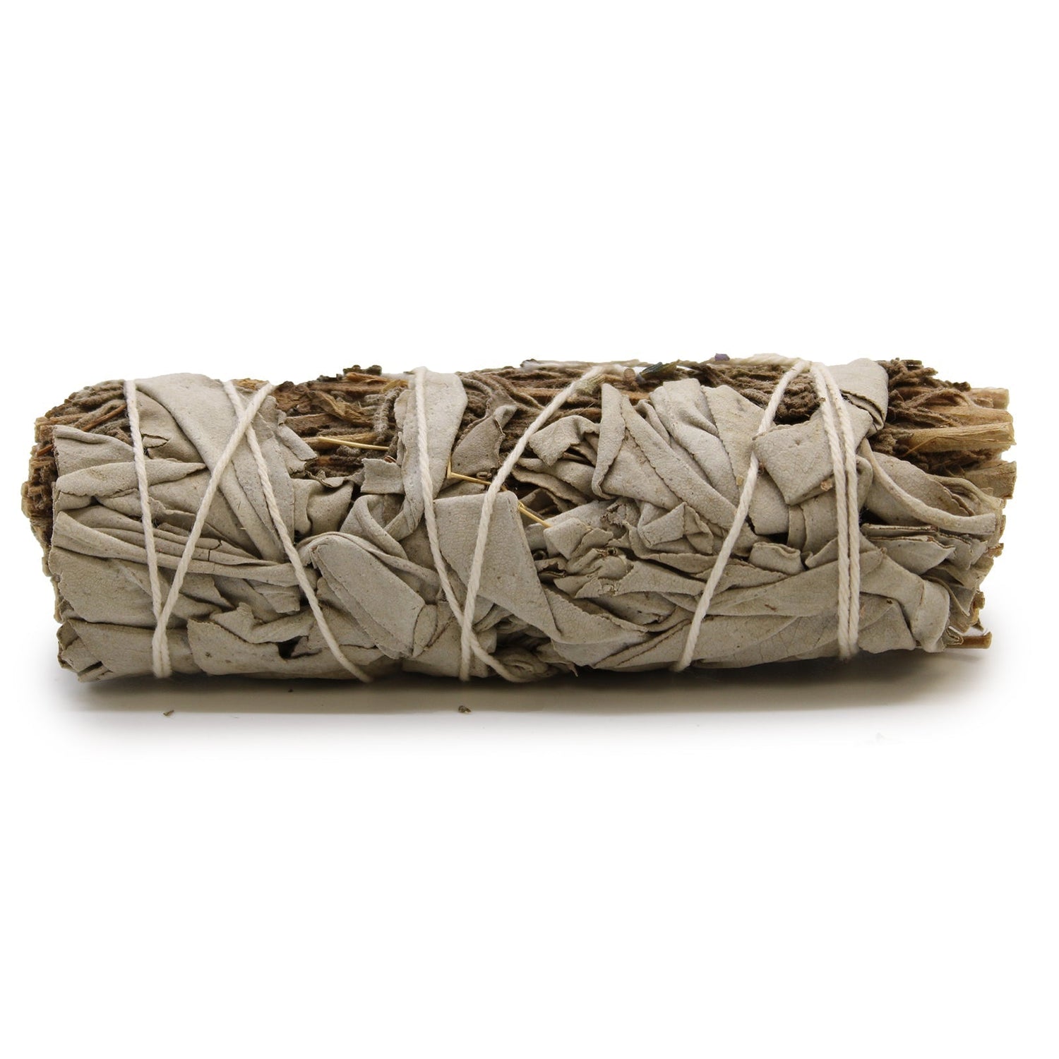 Bound in white twine, this hand-tied bundle of sacred herbs is an ancient tool of purification. Pale, curled sage leaves nestle with dark lavender pieces, ready to kindle a gentle ritual of smoke and intention. Rooted in Indigenous North American practices of smoke cleansing, it’s offered with respect for those traditions and for mindful use at home. 🌿