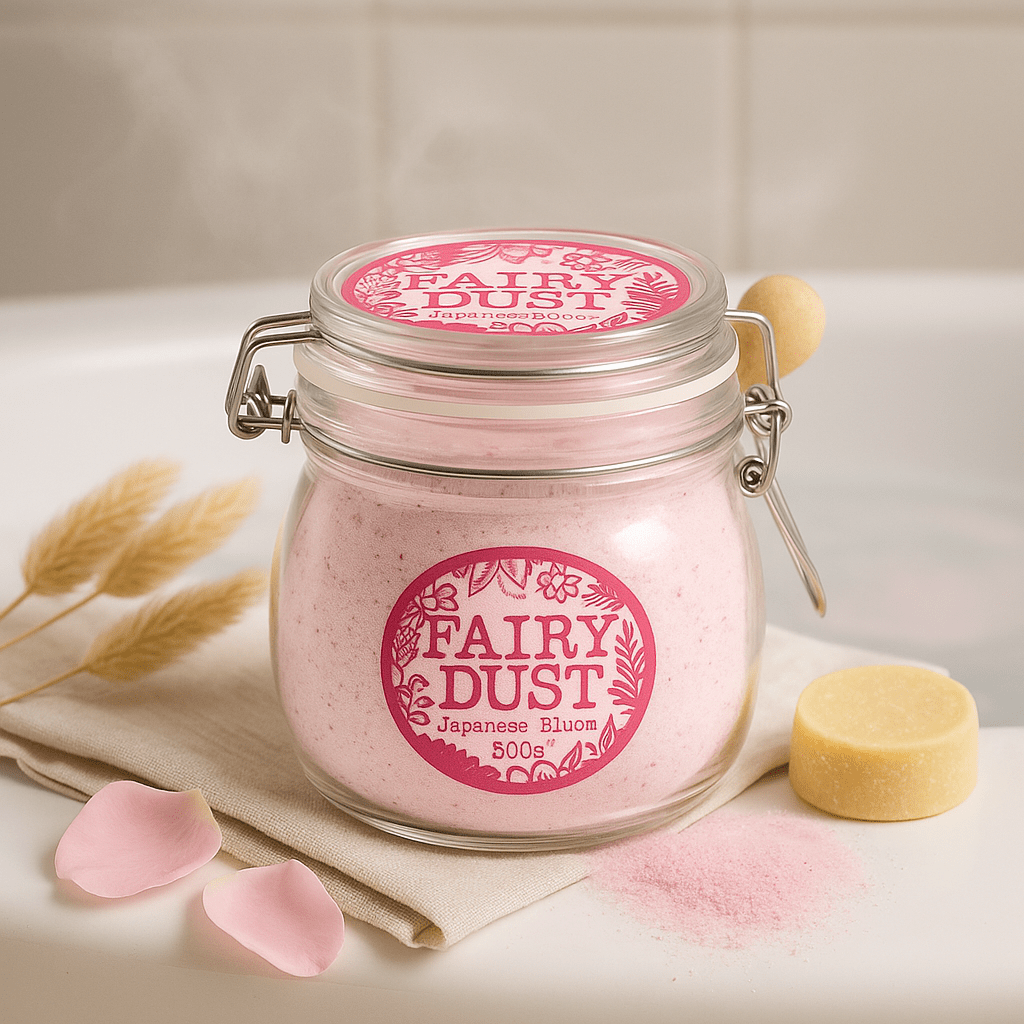 Steam rises, the clip-top jar clicks open, and a blush of pink dust meets warm water. The air lifts with a light, petal-soft floral accord — a gentle nod to Japanese bloom traditions, calm and clean. 🛁