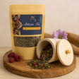 Open the tin and you’ll see a rustic mosaic: inky curls, flashes of green, vivid blue-violet and saffron petals, and ruby fruit pieces. The aroma is soft and grounding—earth and wood—lifted by a gentle, berry-like sweetness. Steeped, the liquor settles into a clear, chestnut-amber hue. It tastes round and full-bodied, with mellow earth, a hint of dried fruit, and a lingering, slightly sweet finish. It invites a slower breath. 🕯️