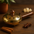 The warmth of polished brass, a steady wooden handle, and the soft hush of fragrant smoke — a simple ritual made graceful. Crafted in India, where brasswork has been refined for generations, this lidded burner brings a calm, steady presence to moments of incense. 🌙✨