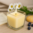A calm flame rises from pale soy wax in clear glass with gently rounded edges — a quiet union of light and vanilla warmth that settles gently into any room. The glow pools softly, inviting an unhurried breath. 🕯️