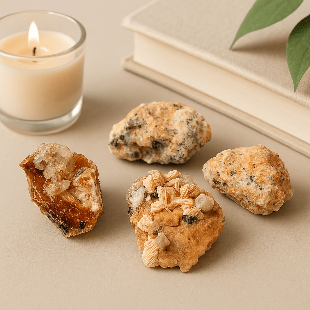 - 🧭 Grounded symbolism: Barite for clarity; sericite for gentle balance—associations held in many practices