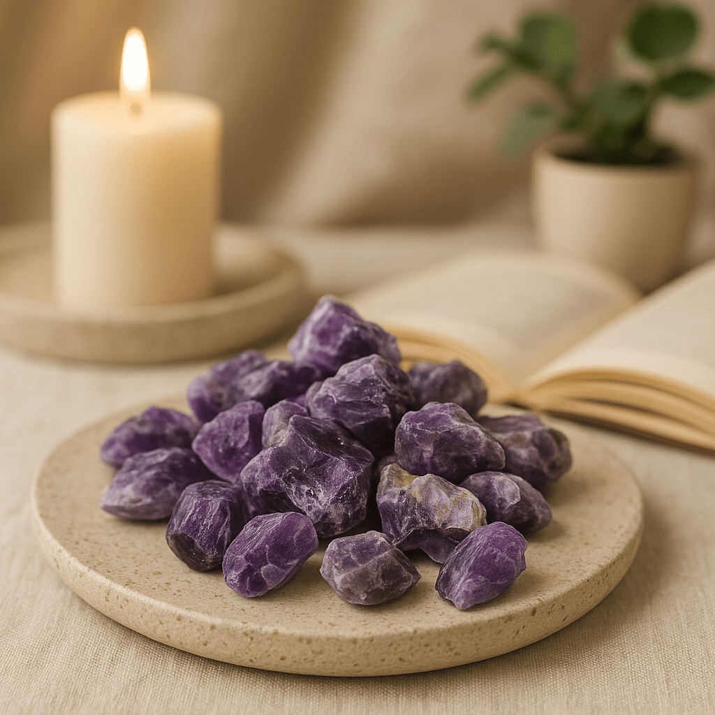 Held in the hand, they feel substantial and grounding; set on a surface, their angular forms catch the light and invite a slower gaze. In many cultures, amethyst has symbolized clarity, composure, and thoughtful intention — its name comes from the Greek “amethystos,” often associated with clear-mindedness. In meditation spaces and home altars, people keep amethyst as a gentle reminder to pause, breathe, and cleanse the atmosphere with mindful attention.