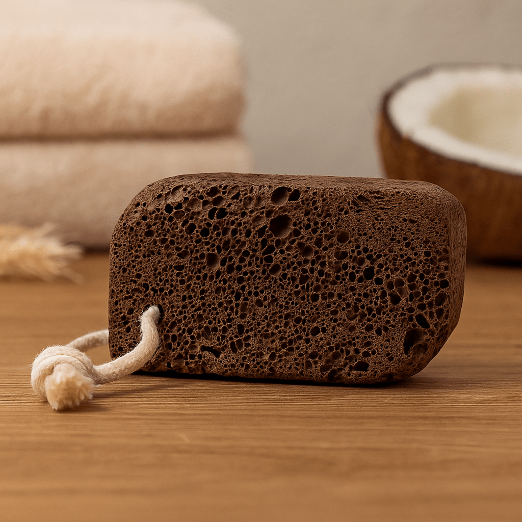 Quietly essential and naturally simple, this hand-sized volcanic foot stone brings gentle care to everyday routines. Lightweight with a warm brown, porous surface and rounded edges, it sits comfortably in the palm, with a braided loop for easy drying and storage. 🌿