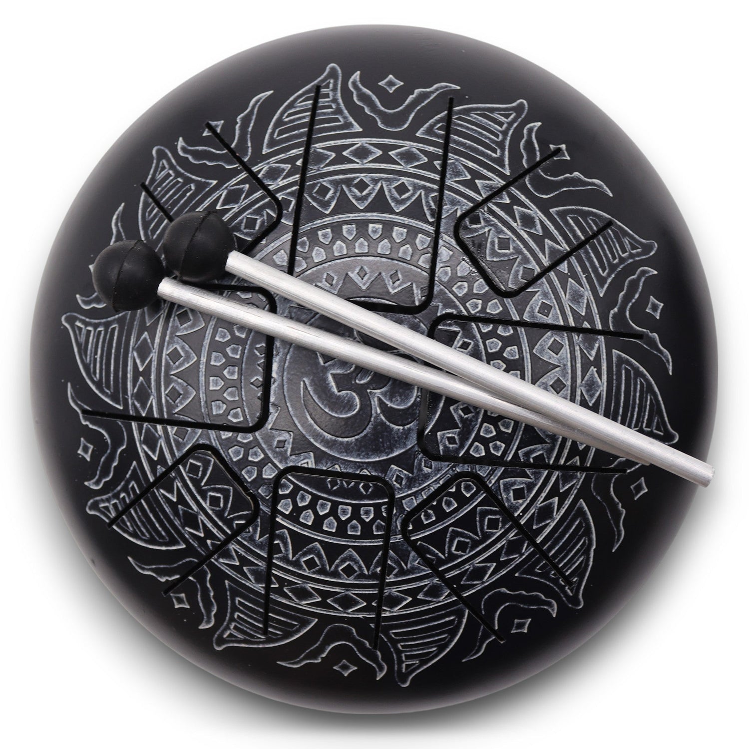 Steel Tongue Drum 8 Note Om Mandala Black