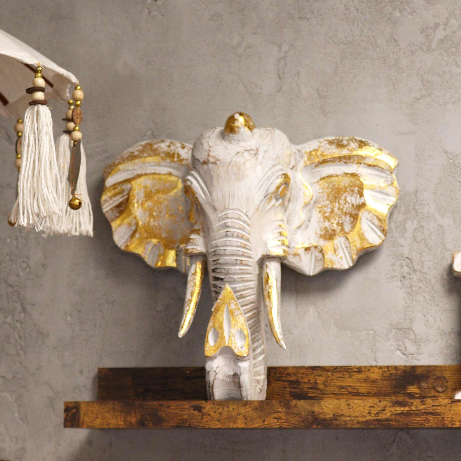 Soft whitewash settles into carved grooves as warm gold catches the light along the ears and tusks. Across many cultures, the elephant is honored as a sign of wisdom, protective strength, and good fortune—kept in homes as a gentle reminder of steadiness, care, and welcome. 🐘