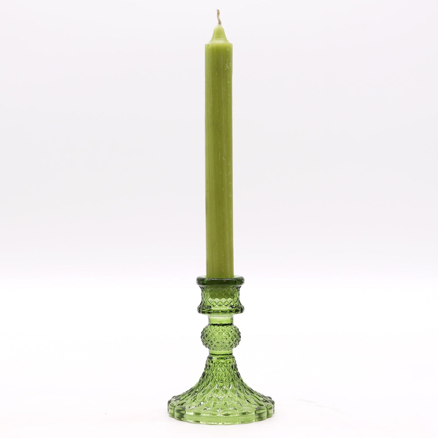 Crafted from a premium vegetable-wax blend with a lead-free cotton wick, it burns slowly and evenly, forming a tidy pool and giving a consistent glow. The flame’s steady center can anchor focus during meditation, journaling, or evening unwinding, and its warmth brings an easy ambience to gatherings and solitary hours alike. Set on a translucent jade-green glass holder with gentle diamond-cut facets, the light plays softly across the table, adding a touch of classic grace without distraction.