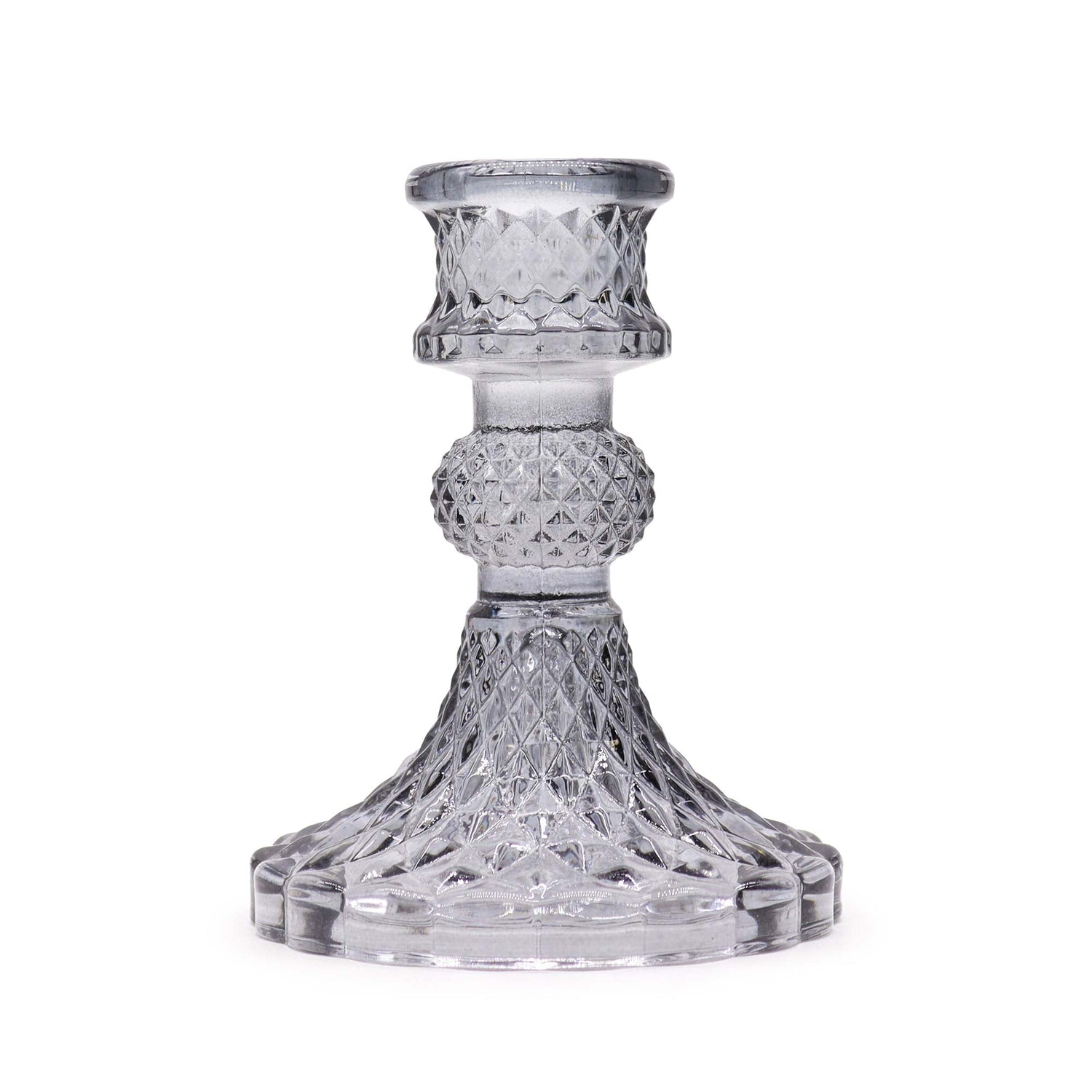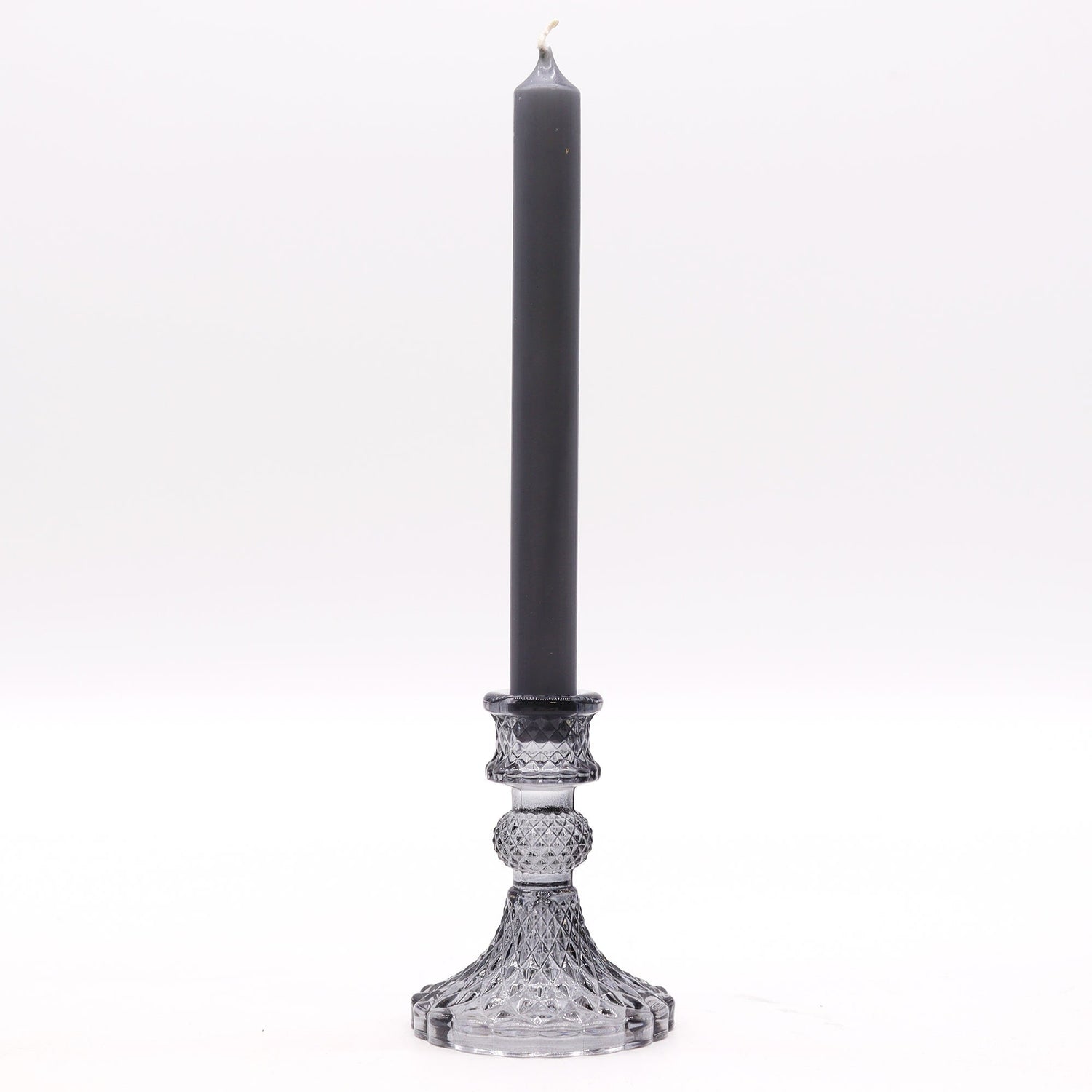 Crafted from high-quality, clean-burning wax with a natural cotton wick, it gives a long, consistent burn for hours on end. The flame stays composed—ideal for centering focus during meditation, softening the mood at the table, or marking meaningful moments. Set on a simple plate or paired with a vintage pressed-glass holder—think scalloped base, knopped stem, and diamond-textured facets—the light dances gently across the surface, adding a touch of timeless grace.