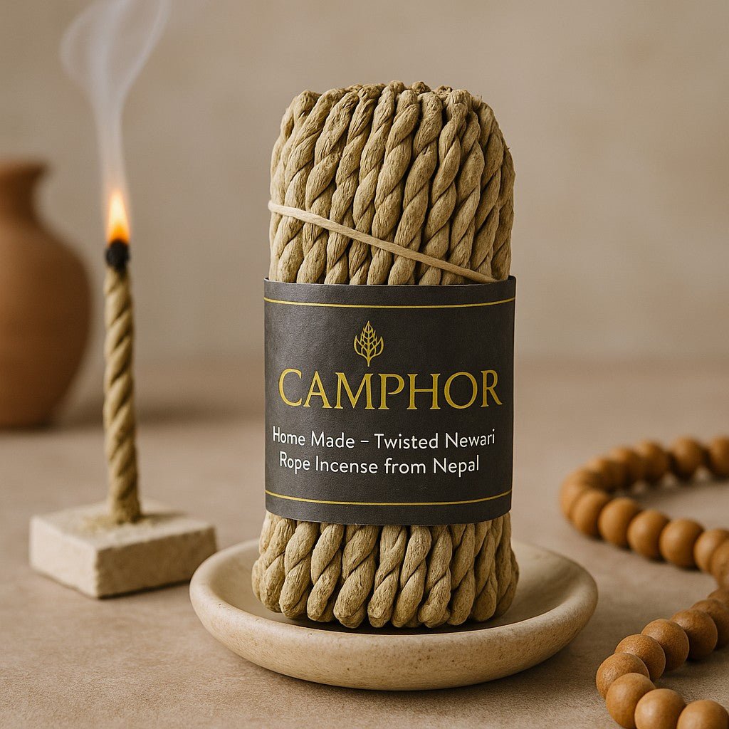 Cool, clean notes rise as the hand‑twisted rope takes a gentle ember. Between your fingers, the braid feels firm and paper‑smooth — a traditional Newari craft from Nepal, carefully hand‑rolled and braided to carry natural aromatics in a simple, beautiful form. 🌿