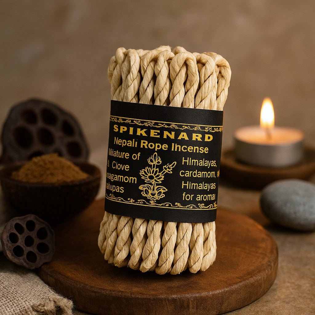 The cords feel sturdy and softly fibrous in the hand — short, tightly twisted ropes braided in the Nepali tradition. Each piece is hand-rolled with Himalayan botanicals, an artisanal way of burning incense that has long been welcomed in temples, stupas, and homes across the region. 🌿