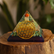 Orgonite Pyramid, Flower of Life Copper Gemstones 80mm