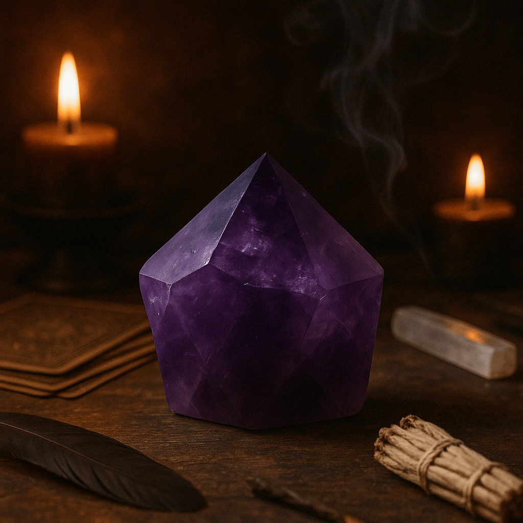 Amethyst is a purple variety of quartz appreciated across cultures—from the Greek “amethystos” to medieval European adornment. In contemporary crystal traditions it’s linked with the crown and third‑eye chakras and February’s birthstone, often referenced for calm focus and reflection. Origin: China. 🧘