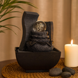 Water slips over the rough tiers with a soft, steady murmur, collecting gently below; a built-in light gives the sphere a subtle glow and turns ripples into a quiet shimmer. A whisper-quiet electric pump with adjustable flow keeps the stream steady, making it easy to read, work, or meditate beside. In feng shui, water symbolizes flow, renewal, and harmony; small fountains are traditionally placed to encourage balanced movement in the home. Many choose the north area (linked with the water element) and angle the flow inward to invite energy toward the interior—hallways or a home office can be thoughtful spots. 🧘