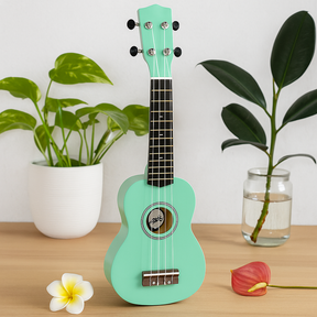 A glossy wash of mint green catches the light, and the first gentle strum answers with a bright, warm voice. Handcrafted with care, this 4‑string ukulele brings an easy, playful rhythm to everyday moments — light in the hands, open in tone, and ready for simple, joyful creativity. 🎶