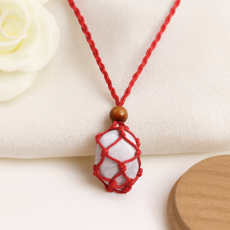 Běžná cena £150Jednotková cena /NedostupnéSklademNáhrdelník s drahokamem, bílý nastavitelný makramé šňůra