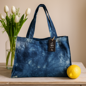 Hluboké mořské modři se vlní přes matně tkanou látku, pevnou a klidnou. Tento tote je funkční, ale zároveň duševní společník — taška, která přináší lehkost při pochůzkách a půvab do každodenního života, jemně spočívající na rameni, zatímco se s vámi pohybuje.