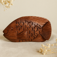 Hladké dřevo sheesham, leštěné do jemného lesku, má tvar stylizované ryby, která pohodlně padne do ruky. Vyřezávané části jsou přesně sladěné; posouvejte a zvedejte je v pořadí, abyste odhalili malý vnitřní prostor – umělecké spojení sochařství a funkce. Ručně vyřezávané na Bali, nese klidnou přítomnost zručného řemesla. Motiv ryby, známý v mnoha kulturách, je často spojován s plynulostí a přizpůsobivostí – jemná připomínka, abyste se pohybovali s lehkostí. 🐟