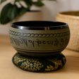 Jak používat: položte misku na polštář nebo pevnou dlaň. Pro uzemňující tón jemně poklepejte na okraj paličkou. Pro nepřetržitou vibraci kroužte pomalým, rovnoměrným tlakem po okraji, dokud se tón nespojí a nezazpívá. Zkuste ji zaznít na začátku meditace, před spaním nebo když chcete osvěžit atmosféru místnosti. 🕯️