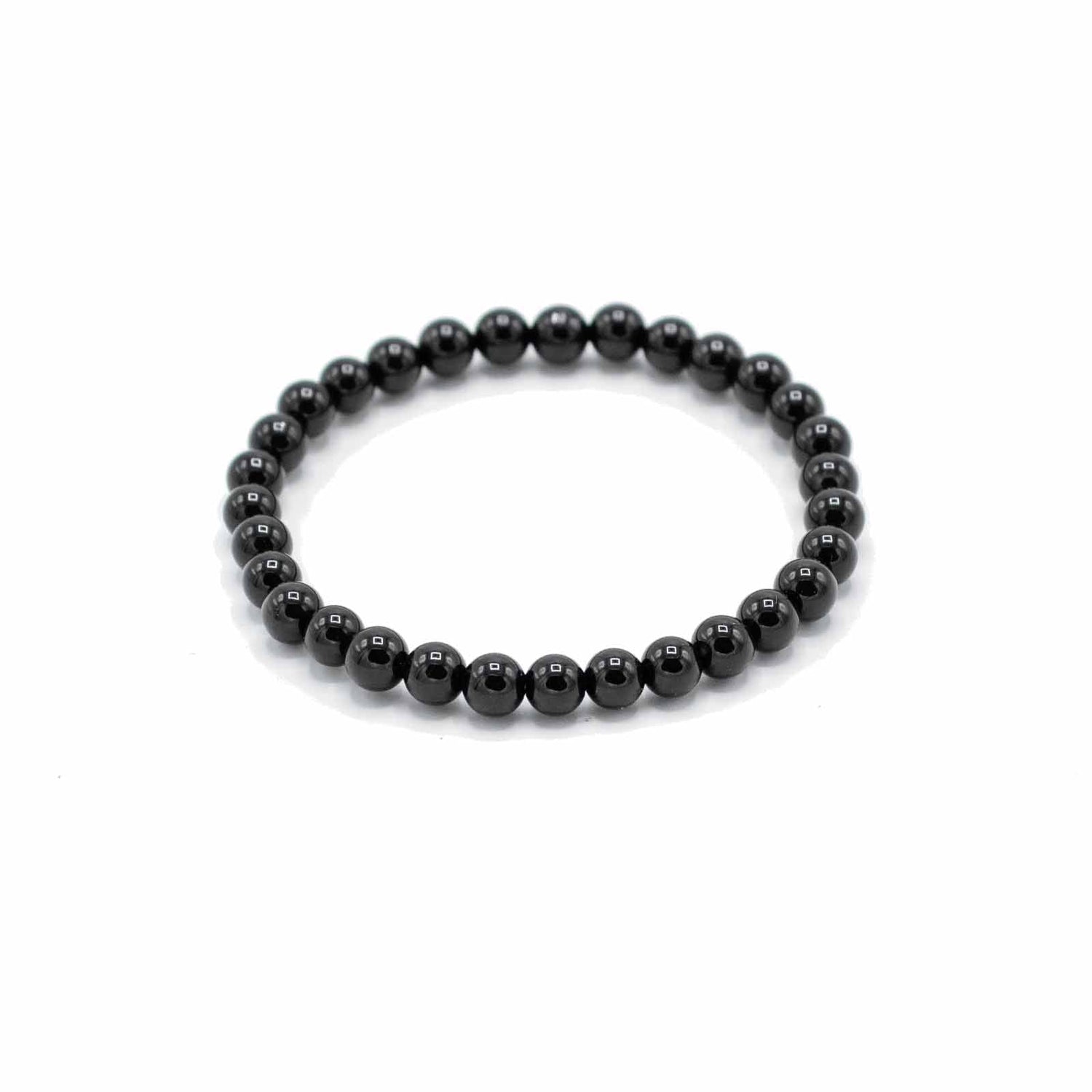 Chladné, hladké korálky jemně spočívají na zápěstí—lesklé černé, vysoce leštěné, uspořádané v nepřetržitém kruhu. Tento minimalistický náramek se stává tichým kotvou pro záměr a vědomý život, nesoucí účel ve své jednoduché, vylepšené formě. 🖤