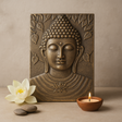 Zpracovaný v antickém cínovém tónu se stínovanými prohlubněmi, obdélníkový panel odhaluje klidného Buddhu se zavřenýma očima a jemným úsměvem, rámovaného vystouplými listy. Hladké plochy obličeje kontrastují s tečkovanými texturami, perličkovými kudrlinami a jemnými liniemi oděvu, zatímco malý lotos spočívá uprostřed hrudi. Světlo po celý den lehce hladí povrchy, prohlubuje reliéf a dodává místnosti stálou, vyrovnanou atmosféru. Vyrobeno v Indonésii, jeho design od okraje k okraji působí pohlcujícím a moderním dojmem, což z něj činí přirozený středobod nad konzolí, pohovkou nebo v tichém koutě. 🪷