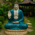 Chladné tyrkysové záclony, hladké kontury a vyřezávaný lotosový podstavec se setkávají v klidné, uzemněné přítomnosti. Tento sedící Buddha přináší nadčasový pocit rovnováhy do vstupních prostor, obývacích pokojů a chráněných venkovních prostor, zvoucí k tiššímu rytmu dne. 🪷