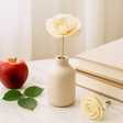 Matné slonovinové růžové květy, ručně tvarované z lehkého sola dřeva, sedí na štíhlých rákosových stoncích. Jsou lehké v ruce a tiše elegantní na poličce, nabízejí umělecký způsob, jak provonět a stylizovat váš prostor. 🌿