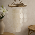 S každým poryvem větru se tenké disky capiz dotýkají a vydávají jemný, perleťový zvuk — něžné připomenutí rovnováhy, přítomnosti a neviditelného proudu, který prostupuje prostorem. Zavěšené na ošlehané větvi splaveného dřeva, kaskádovité prameny přinášejí harmonii a tichou půvabnost do místnosti nebo zahrady. 🌬️