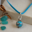 🔔 Zvedněte přívěsek a uslyšíte jemný, stříbrný zvuk — tichou notu, která uklidňuje dech, jak světlo zachytí otevřenou kouli. Chladné stříbro se setkává s teplem pokožky, zatímco lesklá tyrkysová koule září zevnitř, nabízející krásu a jemný pocit přítomnosti. 💙
