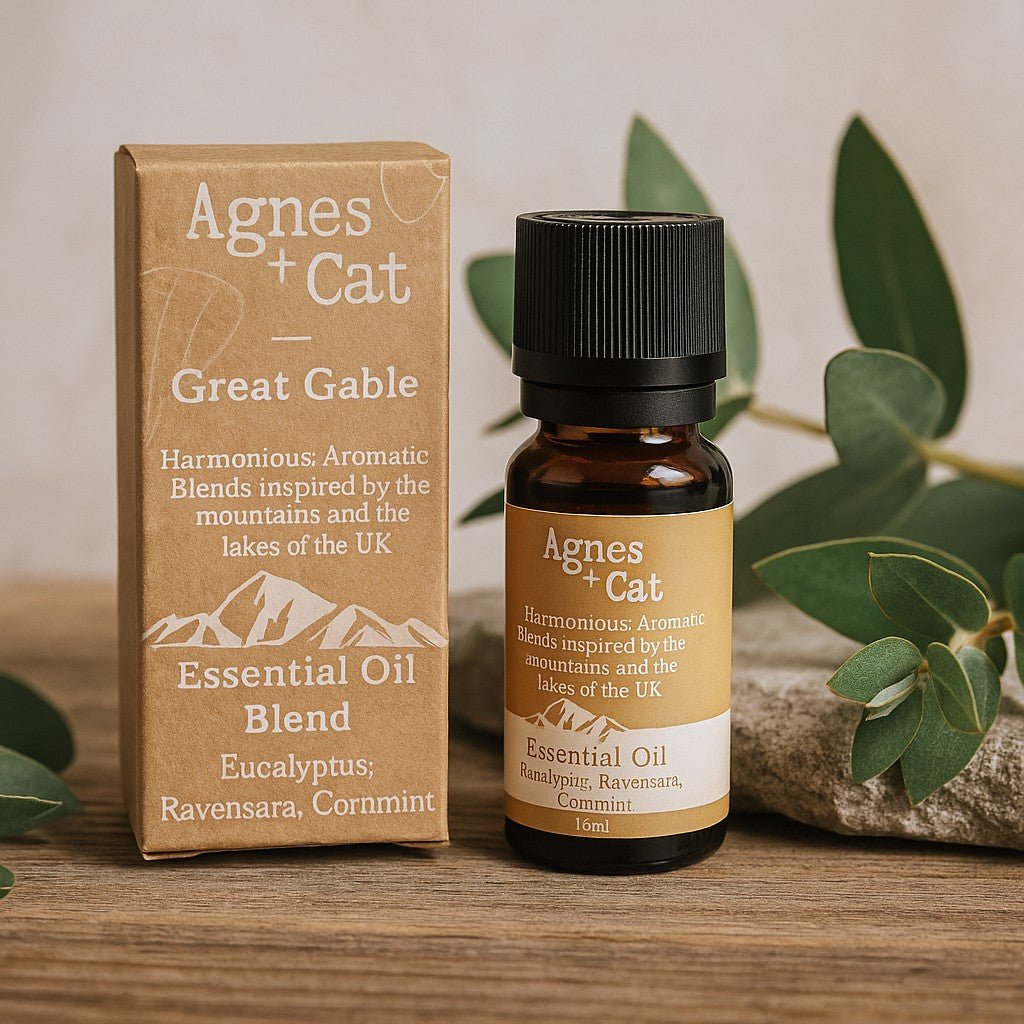 Great Gable kombinuje eukalyptus, ravensaru a kukuřičnou mátu pro chladivý, vzdušný nádech — jasný, mátou políbený vánek. Windermere spojuje citron, tea tree a mátu peprnou pro jiskřivý zážitek s čistým, spa-like nádechem. Skiddaw doplňuje sadu pomerančem, levandulí a smrkem — jemně květinové, lehce dřevité a krásně vyvážené. Balené v jantarových lahvičkách o objemu 10 ml s přírodní kraftovou krabičkou, každá směs je vytvořena pro vědomé chvíle doma: přidejte pár kapek do difuzéru nebo aromalampy pro osvěžení prostoru; nařeďte nosným olejem pro lehkou masáž hrudníku nebo spánků; nebo vmíchejte do teplé koupele po správném naředění. Vždy proveďte test na kůži a vyhněte se kontaktu s očima. 🌿