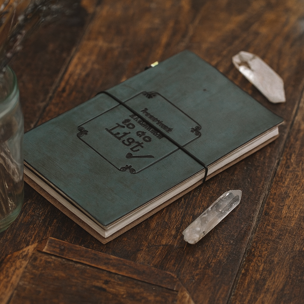 Chladný a hladký pod dlaní, tmavě šedozelený obal nese tiché ražené rámování s nápisem „Seznam důležitých věcí k udělání.“ Toto je malý svatostánek v psané podobě — nádoba pro myšlenky, emoce a záměry, kde mohou nápady zakořenit na stránce a růst vlastním tempem. 📓