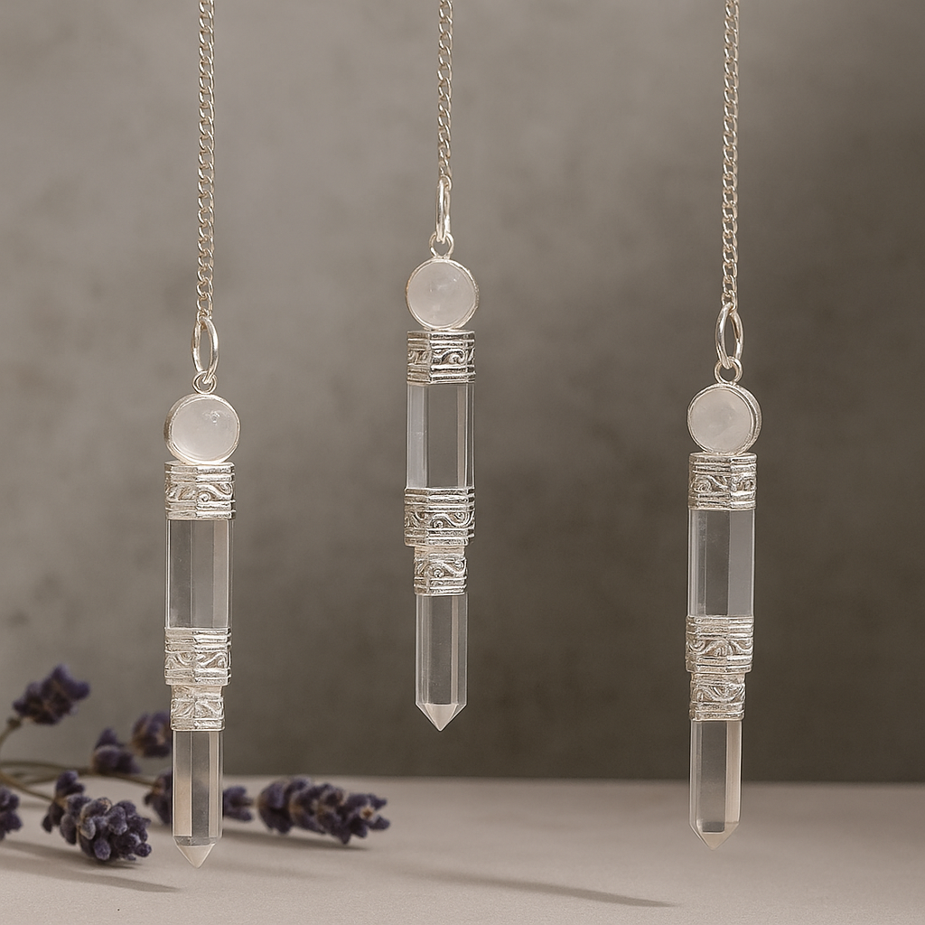 Držený pevnou rukou a klidným dechem, vyvážená váha kyvadla nachází klid, pak jemný, čitelný kyv. Mnoho lidí používá tento tichý pohyb k podpoře meditace, kontrolám v deníku nebo vědomému rozhodování—kladením jednoduchých otázek, aby lépe naslouchali svému vnitřnímu hlasu. Křišťál (kamený křišťál) je široce ceněn napříč tradicemi jako symbol jasnosti, otevřenosti a jemné pozornosti, což z něj činí přirozeného společníka pro reflexivní praktiky. 🧘