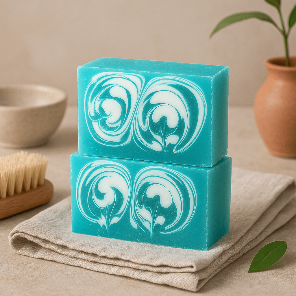 Chladivý na dotek a jemně lesklý, tento ručně vyráběný bochník na roztápění a nalévání ukazuje klidné akvamarínové tělo propletené krémovými bílými šmouhami — praktický kousek řemesla mýdla, který je na pultu krásný a snadno se dělí. Promyšlený pro každodenní použití a jemný dárek pro někoho, kdo miluje jednoduché, kvalitně vyrobené věci. 🧊