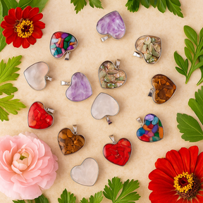 Ocelové přívěsky srdce Různé drahokamové úlomky Mušle 12 kusů je vyřízeno jako zpětná objednávka a bude odesláno, jakmile bude opět skladem.