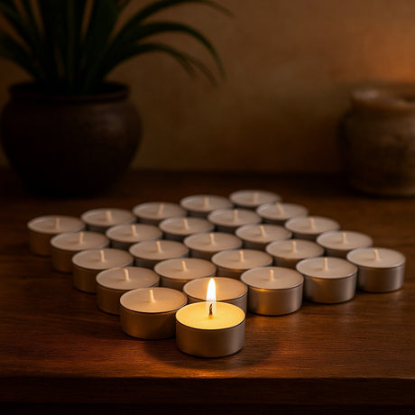 Profesionální tip: Kombinujte více čajových svíček pro vytvoření vrstveného světelného efektu pro větší teplo a kouzlo.