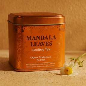 Teplý, medový rooibos naplňuje šálek, doplněný jemnou hvězdicovou badyání a nádechem lékořice. Máta peprná přináší osvěžující nádech, citronová tráva dodává lehkou citrusovou notu a heřmánek vše uklidňuje do hladkého, útulného závěru. Přirozeně bez kofeinu a jemný na patře, je to odpočinkový doušek, zvláště po jídle.