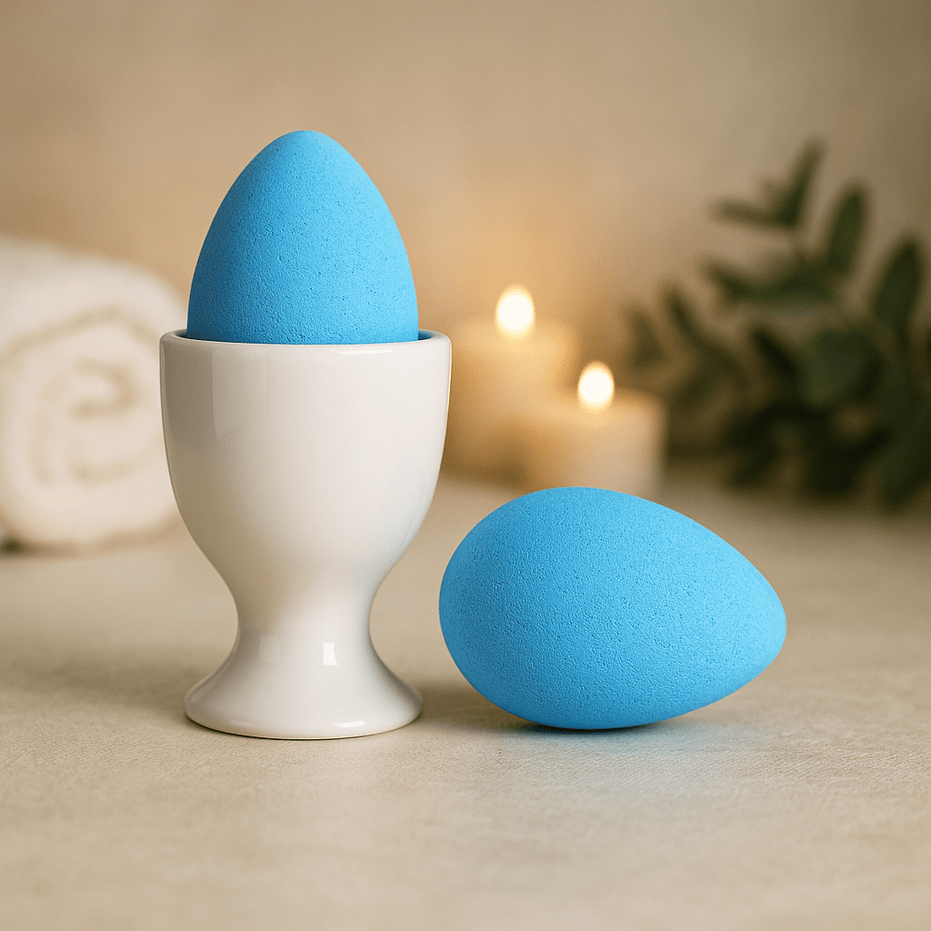 Glat at røre ved og mat i sin klare blå nuance, denne lille, ægformede badebombe ligger let i din håndflade. Læg den i varmt vand og hør den blide brus begynde — et lille, stabilt ritual til at blødgøre dagens kanter. Fremstillet i Storbritannien med en ren, minimalistisk blanding, det er et stille øjeblik af omsorg, du kan vende tilbage til når som helst. 🫐