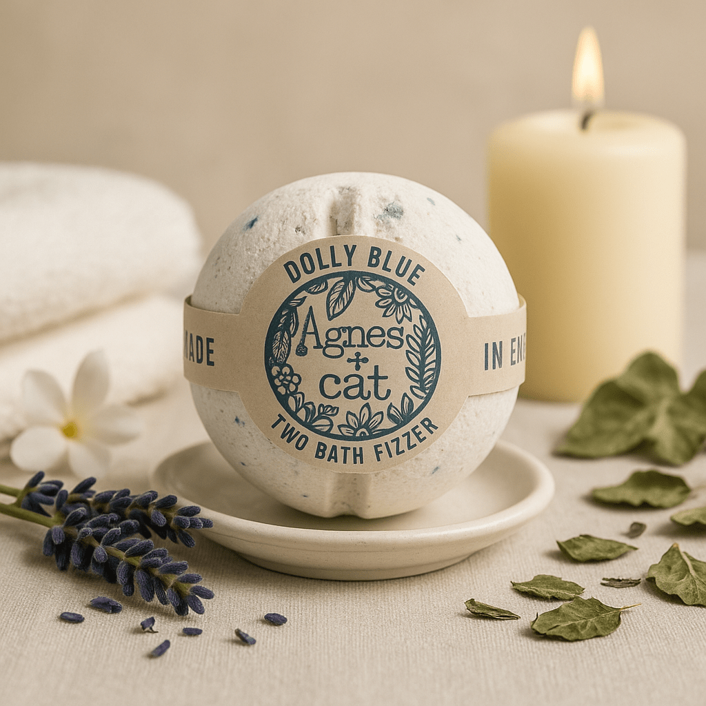 🫧 En legesyg bobleeksplosion bærer Dolly Blue-blandingen — sød vanilje og blød moskus med et blidt strejf af patchouli og jasmin — og giver et øjeblik til bare at nyde.