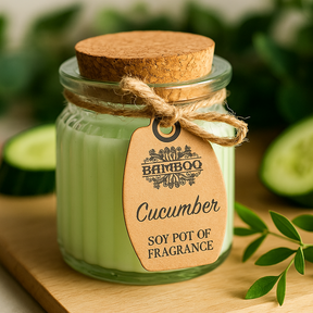 En lille, stabil flamme møder en kølig grøn duft, og rummet blødes op. Dette sæt med to agurke-duftende sojalysholdere bringer et stille lys til ethvert hjørne — et blidt lys i en klar glasbeholder med et naturligt korktouch, roligt og uforstyrret. 🕯️🍃