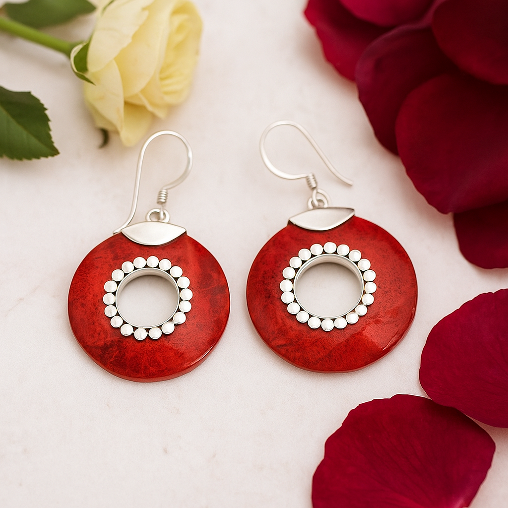 Entdecken Sie den Charme unserer Korallenohrringe aus 925er Silber, handgefertigt auf Bali. Diese atemberaubenden Ohrringe zeichnen sich durch ein kräftiges, rundes Design in leuchtendem Rot aus und sind aus Harz gefertigt. Harz wird seit Jahrhunderten von verschiedenen Kulturen geschätzt, nicht nur als Schmuck, sondern auch als schützender Talisman. 🌟