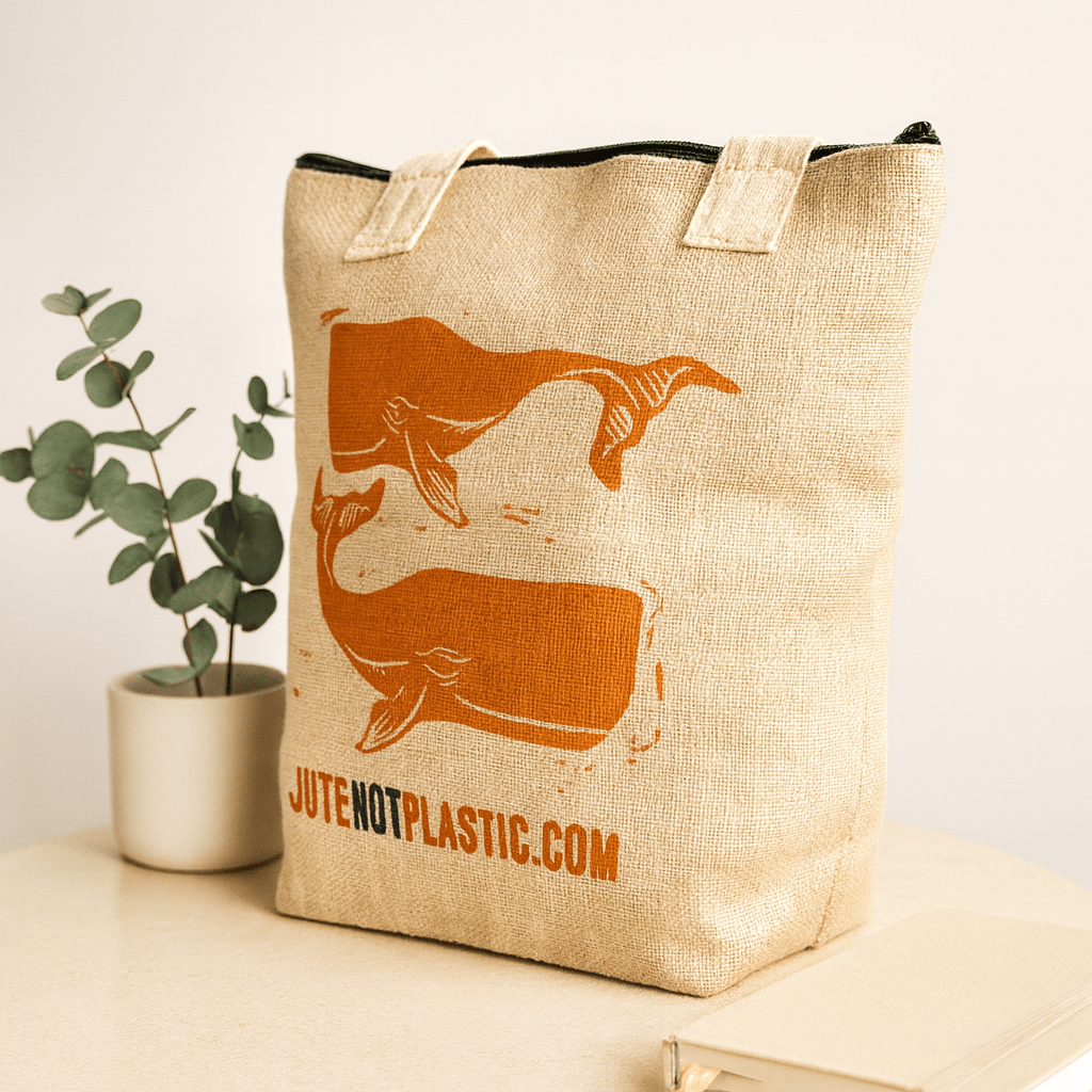 Strukturiertes Juteleder unter der Handfläche, zwei leuchtende Wale auf der Vorderseite und ein leichtgängiger Reißverschluss oben – diese Tasche ist ein funktionaler und zugleich stilvoller Begleiter für Besorgungen, Märkte und entspannte Ausflüge. 🌿